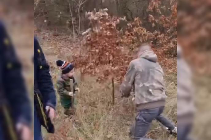 PRVI PUT SA OCEM PO BADNJAK: Veljko u ZORU sa sinom u ispoštovao SRPSKI OBIČAJ, mali Željko zamahnuo SEKIROM