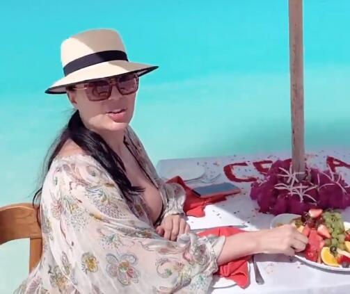 Pevačicu je na plaži dočekalo iznenađenje, sto u vodi na kome je crvenim slovima ispisano "Ceca". Osim toga, na stolu je bilo tropsko voće, a Ražnatovićeva je u lepršavoj bluzi i sa šaširom na glavi prošetala obalom i pokazala koliko joj ovo sve prija.