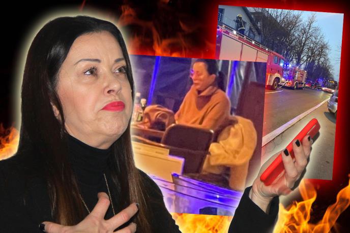 Kurirov paparaco uhvatio je voditeljku u restoranu, koji se nalazi u zgradi koju je požar uhvatio.