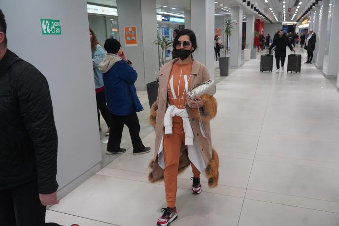 Tanja je na sebi imala trenerku, preko koje je nosila kaput sa detaljima od krzna, a kada je po izlasku iz aerodromske zgrade ugledala paparace počela je da se krije na sve načine.