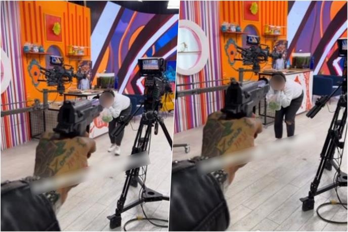 NAŠ VODITELJ POTEGAO PIŠTOLJ NA KOLEGINICU U STUDIJU! Isplivao ŠOK SNIMAK: Žena prestravljena trči i krije se: GUBI SE! (VIDEO)