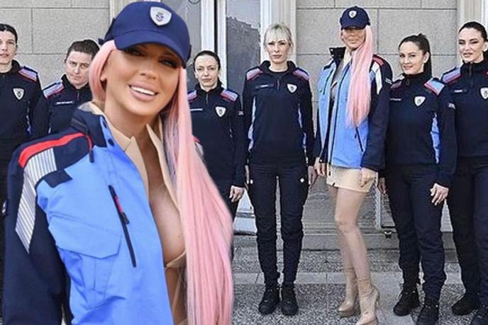 KARLEUŠA POSETILA 45 NOVIH KOMUNALNIH MILICIONERA U BEOGRADU: JK obukla njihovu uniformu i vrtoglave štikle, mreže se usijale FOTO