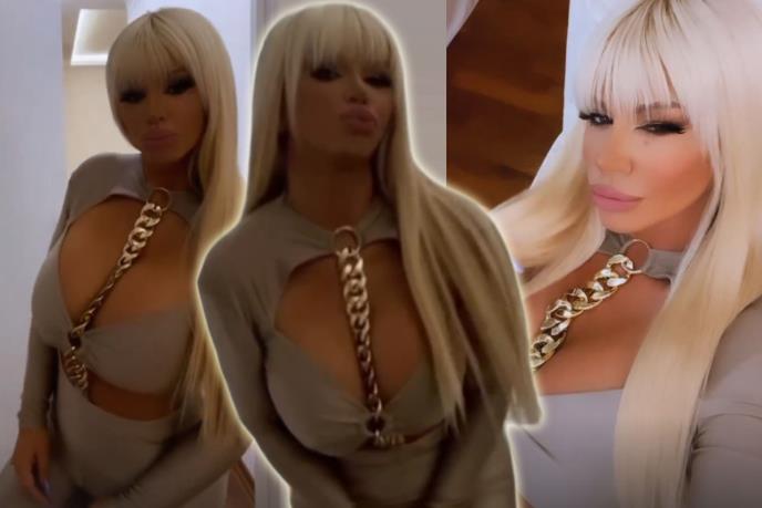 Peačica se nameštala u bež kombinezonu, dok je veliki zlatni lanac "delio" njen sedmice!