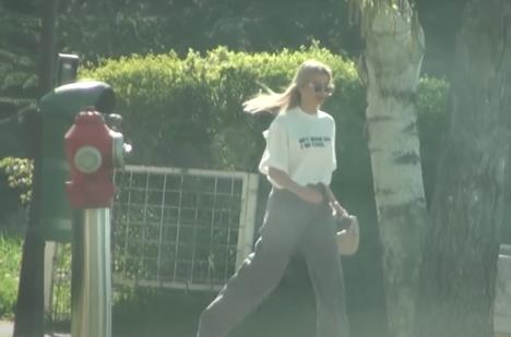 Sa njom je bio momak koji ju je pratio u stopu, on je najpre svratio do prodavnice, a potom na ulici kupio sveže voće.