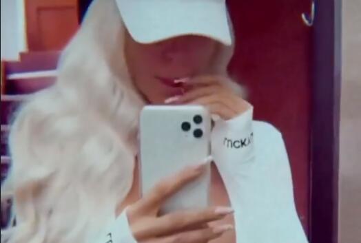 Sa kačketom na glavi, raskopčana do pupka i bez brusa Karleuša je pozirala ispred ogledala, "grickala prstić" i mazila se po golišavim grudima.