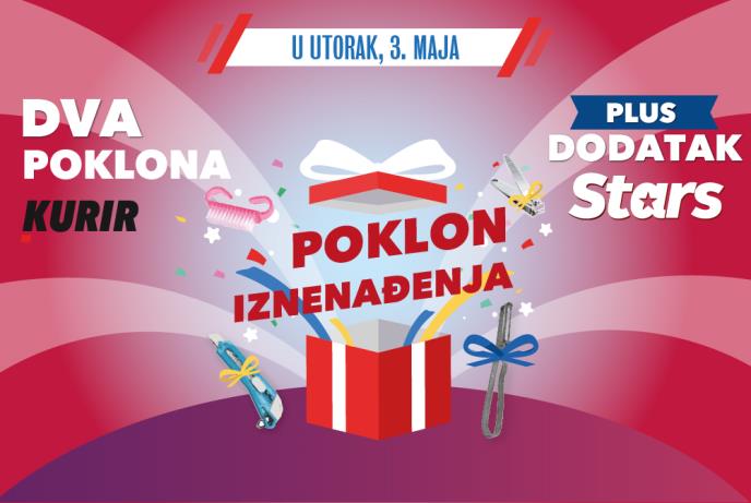 U UTORAK, 3. MAJA, U DNEVNOM IZDANJU KURIRA OČEKUJU VAS DVA POKLONA! DOBIĆETE POKLON IZNENAĐENJA plus dodatak STARS!