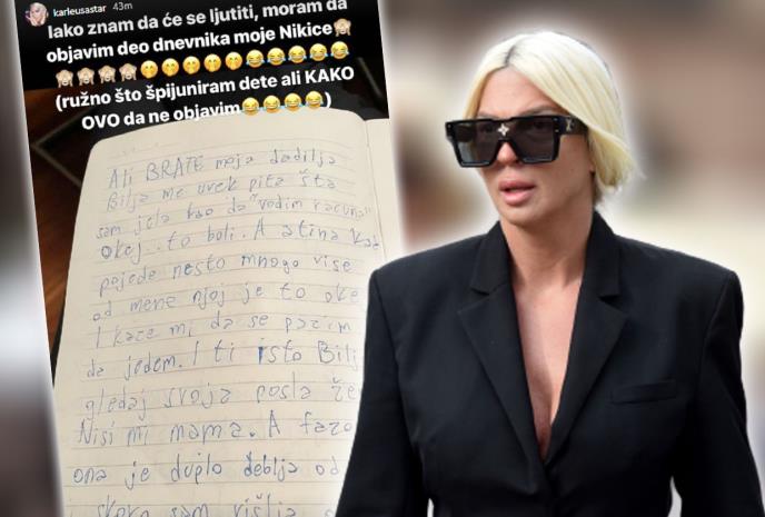 Pevačica Jelena Karleuša objavila je na svom Instagram nalogu stranicu iz dnevnika svoje mlađe naslednice Nike Tošić.