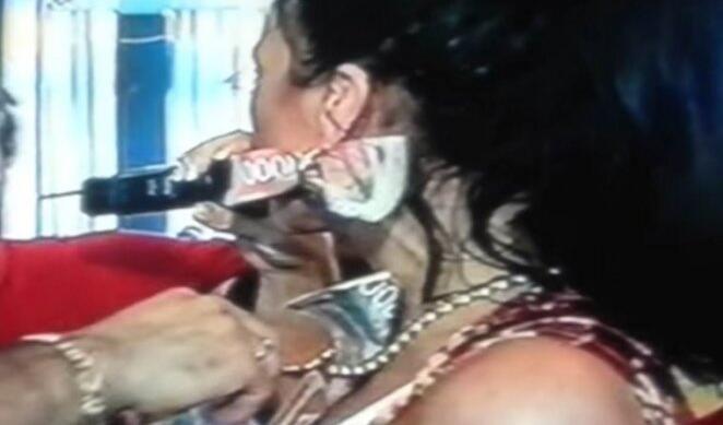Ona je sedela za stolom kada su je pozvali da otpeva pesmu, a muškarac koji je stajao pored nje i kog je "ponela" pesma izvadio je štos novčanica i počeo da je kiti. Najpre joj je zadenuo u grudi, a potom i za ogrlicu, narukvicu, pa i za minđuše i sandale i to sve po 1.000 dinara.