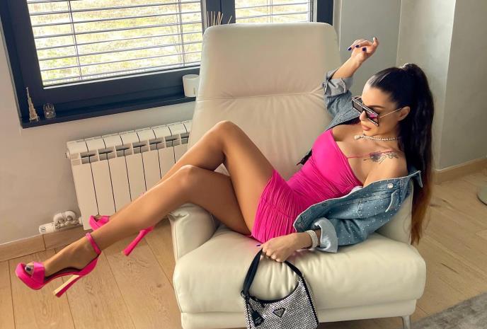 Ovoga puta Mia je skockana, u uskoj roze haljini od čipke, pozirala u automobilu.