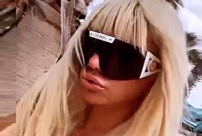 Na snimku se vidi prsata pevačica u minijaturnom, crnom bikiniju kako se uvija ispred ogledala, dok joj iz gornjeg dela vire "sedmice".