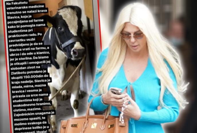 Popularna pevačica pokazala je humanost na delu i dala primer ljudima na koji način treba da se ophode i da tretiraju životinje i da se bore za njihove što srećnije živote. Naime, studenti veterine nedavno su na društvenim mrežama apelovali ljude da im pomognu i uplate ko koliko može, a sve kako bi kravu Slavicu, koju su pozajmili od jedne farme za praksu, spasili i sačuvali od klanice. Iznos koji im je bio neophodan je 150.000 dinara.