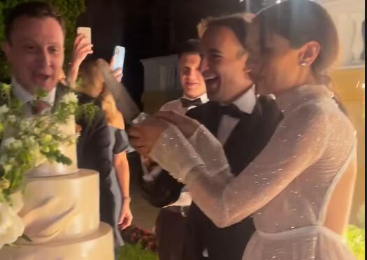 TORTA NA 4 SPRATA, VATROMET I ŠAMPANJAC! Vrhunac veselja na svadbi fudbalera i Terzićeve bratanice, OSMEH nisu skidali sa lica!