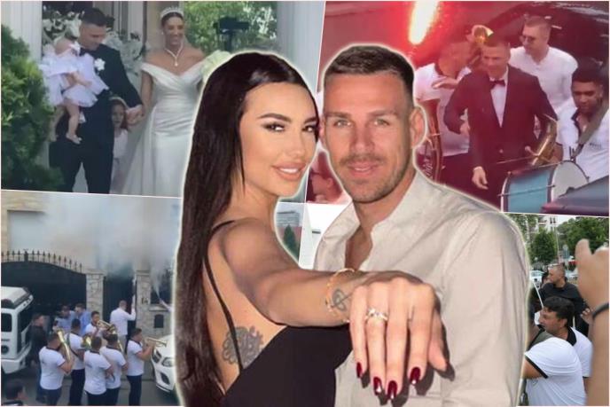 Marko Gobeljić stigao je ispred Hrama Svetog Save, gde će se crkveno venčati sa pevačicom Katarinom Grujić. Fudbaler je iz bele limuzine kitio muzičare parama pre nego što je napustio vozilo.