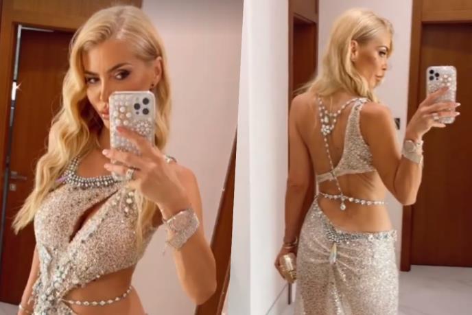Sneža se snimala u ogledalu pred polazak na venčanje i otkrila da je kreacija optočena kristalima providna, a mnogi su se zapitali da li nešto nosi ispod haljine.