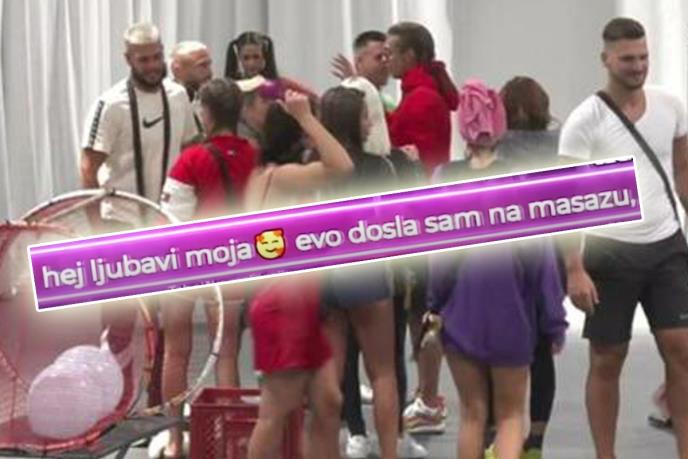 "Od L za L: Hej, ljubavi moja, evo došla sam na masažu, a klinci su kod baki, posle idem tamo pa ćemo kući, U ima vežbice. Jedva čekam sutra da se vidimo", napisala je poruku koja se emituje u kajronu tokom emitovanja Zadruge!