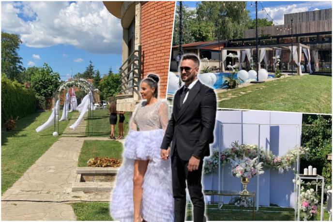 Ambijent je ukrašen belim balonima i baldahinima, a mlada i mladoženja zablistali su u modernim kombinacijama. Mia je u Crkvi nosila drugačiju venčanicu, pa je tako sada izabrala haljinu koja joj je naglasila zategnute noge, dok je Bojan nosio crni smoking.