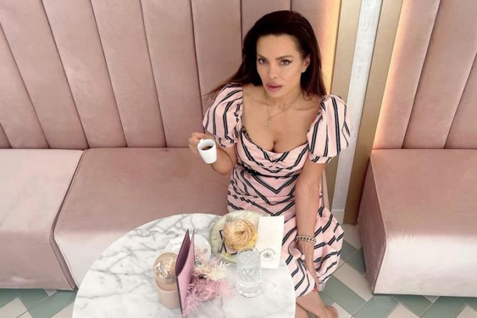 Naime, ona je sada na Instagramu objavila svoju fotografiju u haljini roze boje, sa crnim linijama, dok je poziralauz kafu.