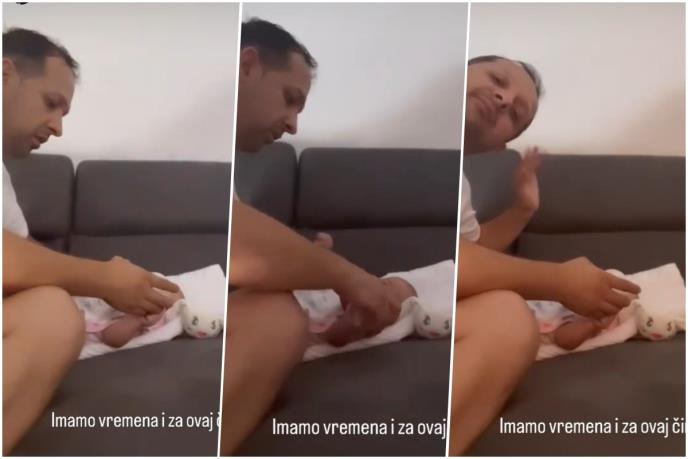 Folker je na Instagramu objavio snimak kako previja naslednicu, daje joj da pije mleko iz flašice i to sve uz osmeh i veliko zadovoljstvo.