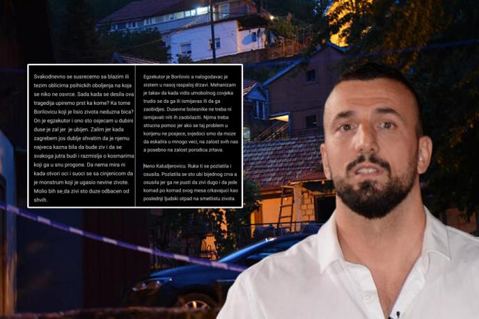 - Svakodnevno se susrećemo sa blažim ili težim oblicima psihičkih oboljenja na koja se niko ne osvrće. Sada kada se desila ova tragedija upiremo prst ka kome? Ka tome Boriloviću koji je lišio života nedužna bića? On je egzekutor i ono što osećam u dubini duše je žal jer je ubijen. Žalim jer kada zagrebem još dublje shvatim da je njemu najveća kazna bila da bude živ i da se svakoga jutra budi i razmišlja o košmarima koji ga u snu progone. Da nema mira ni kada otvori oči i suoči se sa činjenicom da je monstrum koji je ugasio nevine živote. Molio bih se da živi što duže odbačrn od shvih", napisao je Tomović.