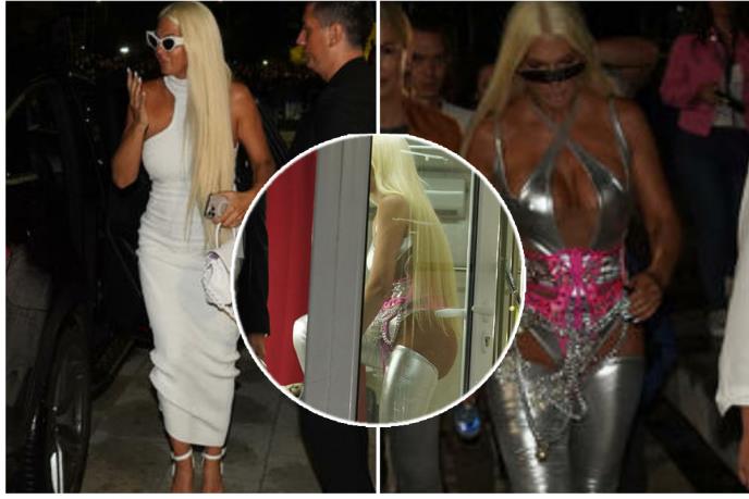 Ipak, za scenu je diva obukla triko u sivoj - srebrnoj boji, koji je iskombinovala sa roze detaljima oko njenog "najubitačnijeg" atributa, a sve to uparila sa vrtoglavo visokim PVC potpeticama brenda "dolče gabana" od 995 evra, koje je svojevremeno nosila i njena koleginica Severina Vučković.