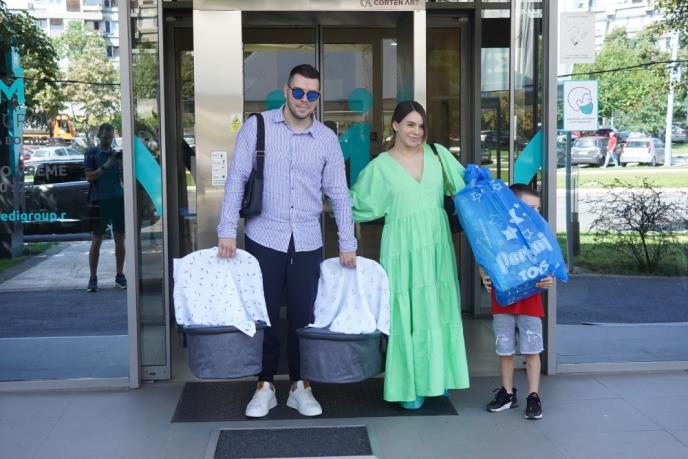 Po Ivanu i blizance došao je njen suprug Petar Mitić i stariji sin, a ponosni tata nije skidao osmeh sa lica.