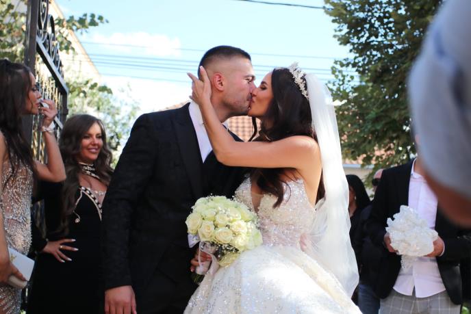 Podsetimo, mlada je zablistala u dugačkoj, beloj venčanici balskog kroja, a nosila je krunu na glavi. Mirko je poneo svečano odelo sa radom koje je upario uz belu košulju.