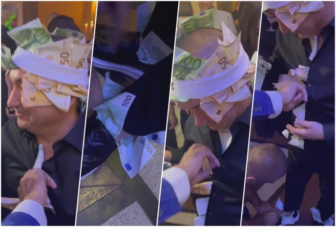 Naime, Katarina Grujić je na svom Instagram profilu podelila video na kom su Đaniju pune ruke novca, ali to nije sve, gosti su mu novac stavljali u košulju, oko glave, pa čak i u cipele.