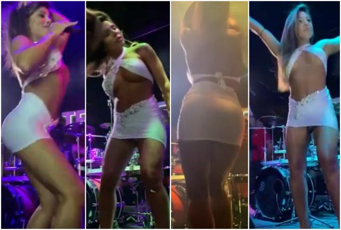 Sandra Afrika pevala je u vrlo kratkoj beloj i uskoj haljini koja je jedva pokrila donji deo njenog tela, dok su grudi kipele iz dve tračice koje su ih jedva i držale.