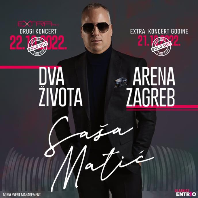 Muzička zvezda Saša Matić u vikendu koji je pred nama održaće dva veličanstvena koncerta u Areni u Zagrebu. Kako je saopštio njegov tim, prvi koncert rasprodat je tri meseca pre koncerta, dok je drugi dan rasprodat pre nedelju dana.