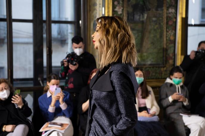 Njen bivši suprug Fabricio, takođe je prošetao pistom u braon pantalonama i crnom sakou, izvodeći performans s belom tkaninom.