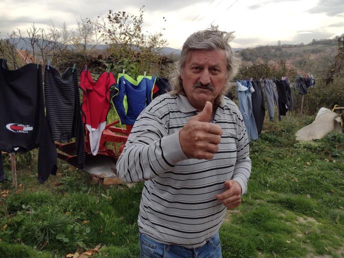 Dok je s reporterom prolazio kroz selo, nema komšije koji mu nije mahnuo, stao s njim da porazgovara. Na kraju je ispričao vic, a otpevao je i pesmu.