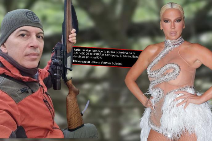 JK URNISALA TOPALKA: PSIHOPATO! Ti ćeš Indijanac da UBIJAŠ PO ŠUMI? Pevač razbesneo Karleušu fotkom iz LOVA SA PUŠKOM, gore mreže