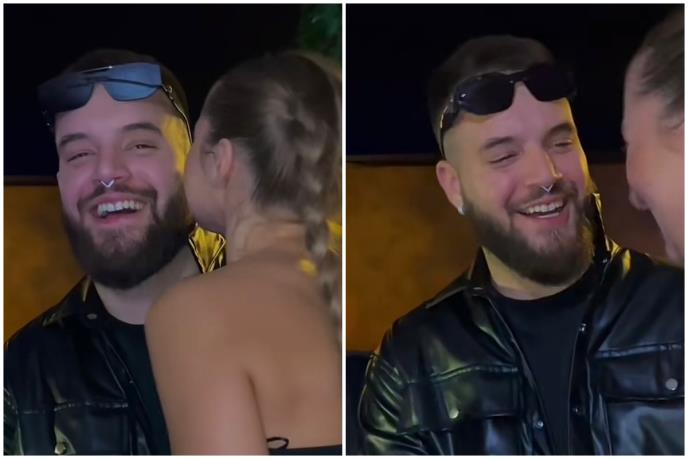 Njih dvoje su nekoliko minuta proveli u prisnom razgovoru, a onda se devojka sa kikicama naglo približila pevaču i poljubila ga u obraz. Ovo mu nije smetalo, pa se nasmejao još više, ali kada je shvatio da ga paparaci vrebaju, malo se trgnuo, pa ju je odmah uhvatio za ruku kako bi se rukovali i pozdravili, te je svako krenuo svojom stranom.