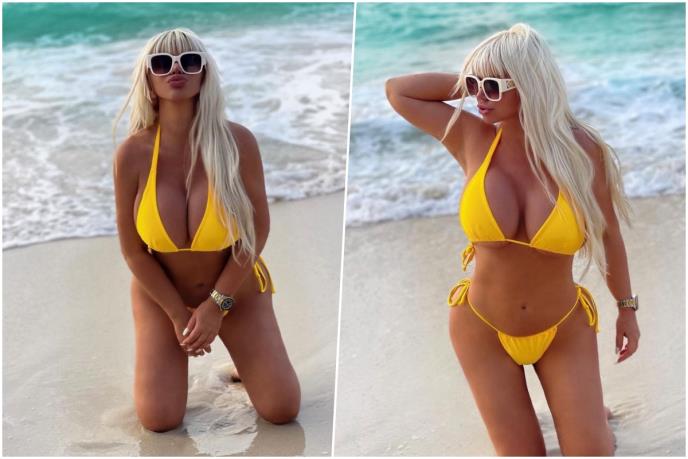 Dara tamo uživa u lepom vremenu i dane provodi na plažama. S jedne je i objavila slike na Instagram, a kako na sebi ima žuti bikini, njene grudi, za koje mnogi tvrde da su nakon ugradnje silikona jaka sedmica, su u prvom planu. Na taj prizor muškarcima se zadržavaju oči, ali Dari to ne smeta.