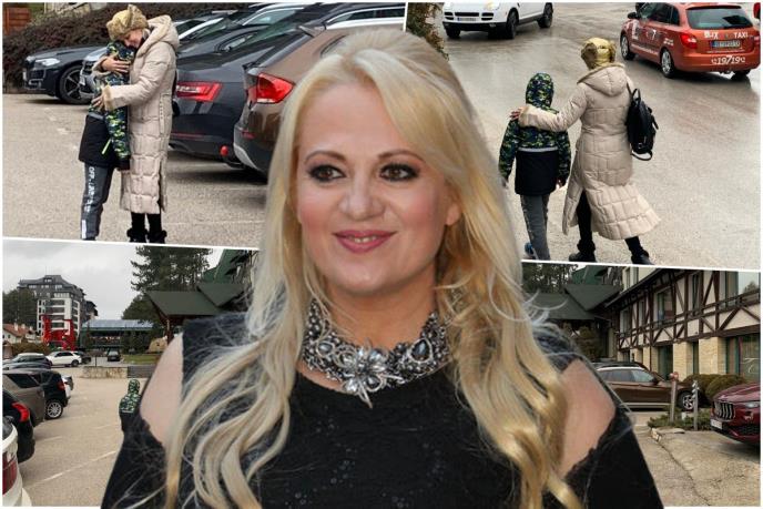 Mališan je pre mame izašao iz objekta, pa kad ju je ugledao poleteo joj je u zagrljaj. Brižna mama je zagrlila jedinca, izljubila ga, a onda su krenuli u šetnju po planinskoj lepotici. U prilog tome svedoče paparaco fotografije koje je napravio nas fotograf.
