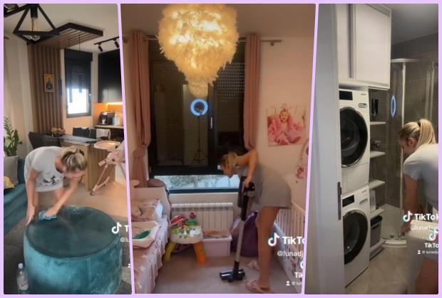 2 KUPATILA, ČUDAN LUSTER, POSEBNA SOBA ZA ĆERKICU: Luna prava domaćica, pokazala kako USISAVA, ČISTI i PERE stan od 160.000 €! Foto: Printscreen