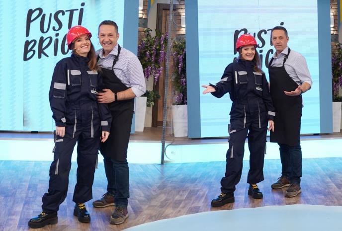 Ljiljana Stanišić nova voditeljka emisije "Pusti brigu" koja se svake nedelje emituje na Kurir televiziji od 17:10 na posao je došla u radničkom odelu i sa šlemom na glavi.