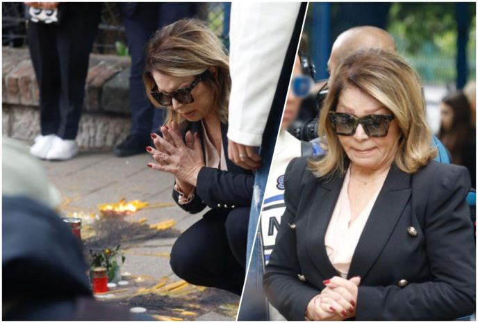 Neda je u tišini i vidno potrešena tragedijom položila bele kale za žrtve u "Ribnikaru", a zatim zajedno sa svojom ćerkom zapalila i sveće u čast preminulima.