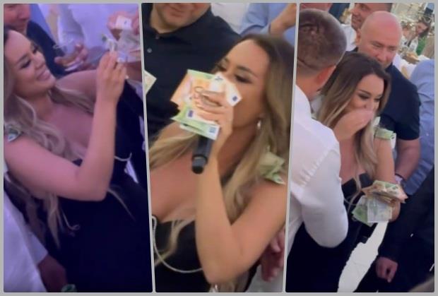 Dok je izvodila numeru od Zorice Brunclik „A tebe nema“, gosti su bili u takvom transu da je u sekndi dobijala i po nekoliko novčanica od po 50 i 100 evra, a kako su joj dobacivali bakšiš sa svim strana nije znala gde će pre, pa su joj kačili i za haljinu.