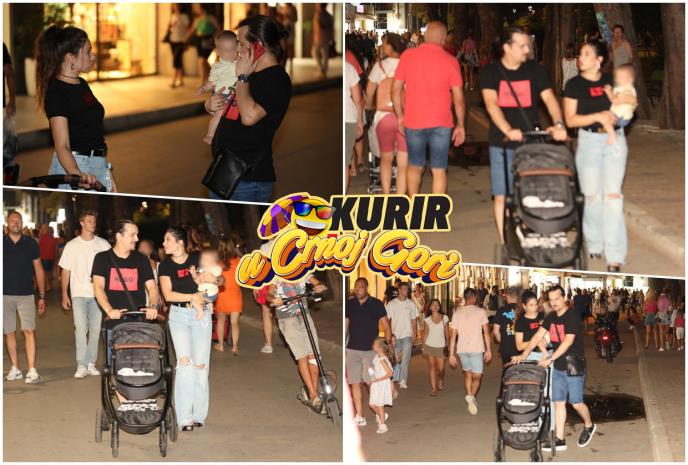 Porodicu smo spazili u srcu Budve, dok su šetali s bebom. Roditelji uživaju na prvom odmoru s prvencem.