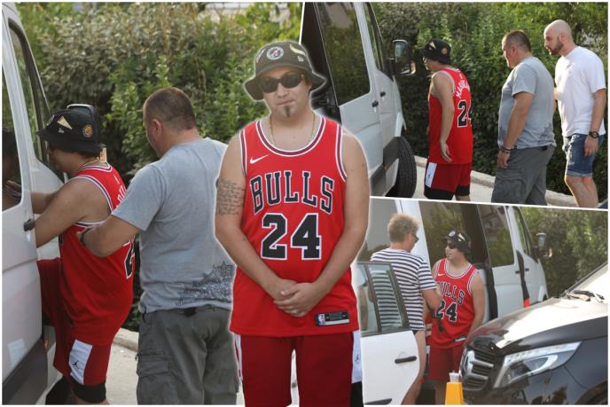 Na sebi je imao košarkaške bermude i dres, šešir, kojim je pokrio glavu, na kojoj sada nema prepoznatljivih dredova, i tamne naočare. Oko njega su bili saradnici, a on je bio veseo i raspoloženo je razgovarao sa svima.