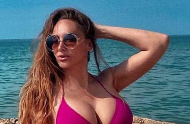 Pevačica se slikala dok je ležala, a minijaturni bikini je jedva prekrio njene ogromne silikonske grudi.