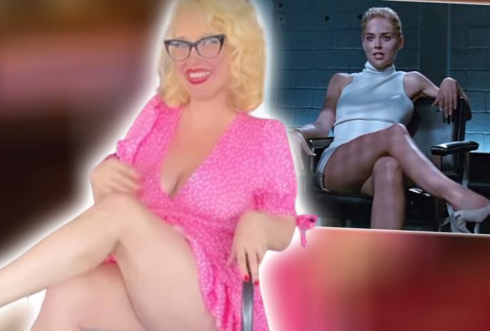 U mini haljini sa subokim dekolteom prekrštala je noge kao nekada u filmu "Niske strasti" Šeron Stoun, ali i otkrila nemirno poprsje.