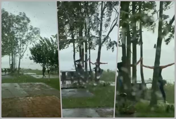 Na snimku koji je objavila na društvenim mrežama vidi se kako je raširila ruke i "uživala" u obilnoj kiši i jakom vetru.