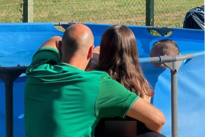 Njih dvoje su se uslikali u ogledalu, dok je Slavica zablistala u zlatnoj haljini, Vladimir je bio u opuštenom izdanju, ali oboje nisu skidali osmehe sa lica.