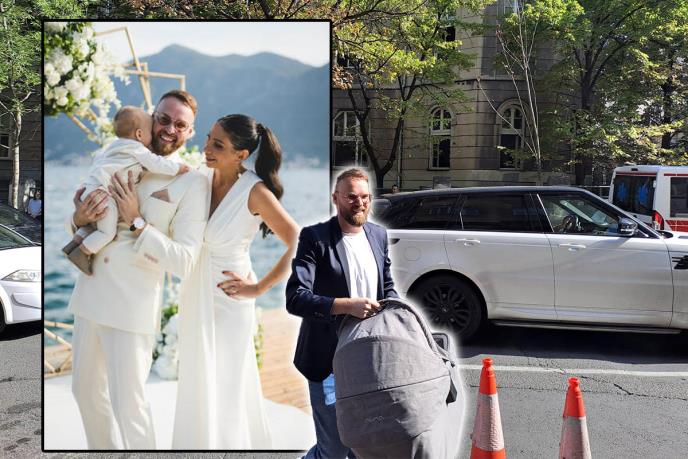 Pevač je stigao u besnoj mašini marke "Range rover", u elegantnoj odevnoj kombinaciji, vidno srećan i raspoložen. U rukama je nosio sivu korpu za bebu i ljubazno je pozdravio okupčjene novinare.