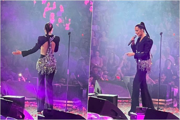 Aleksandra je treći segment svog koncerta otvorila u crnom kompletu, koji je otkrivao njena gola leđa i imao zlatnu suknju.
