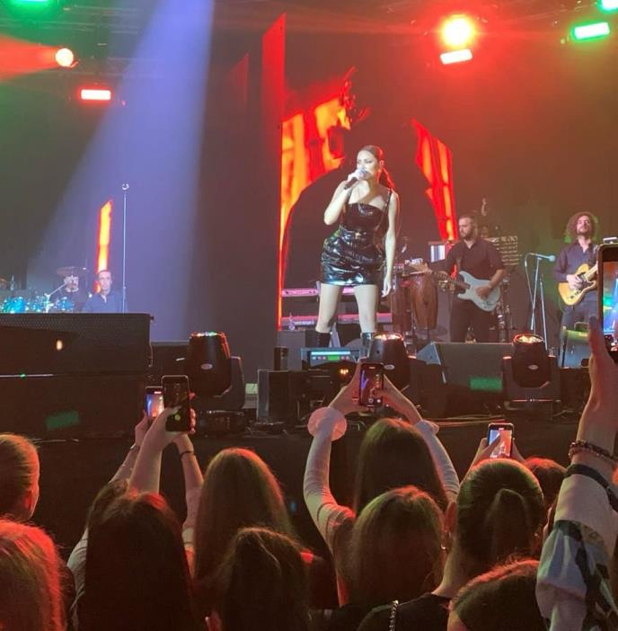 Koncert je otvorila u najglamuroznijem izdanju do sad od kog zastaje dah, a tokom drugog bloka pesama svetlucavu i elegantnu haljinu zamenila je za za skupocenu kožu svetskog brenda.
