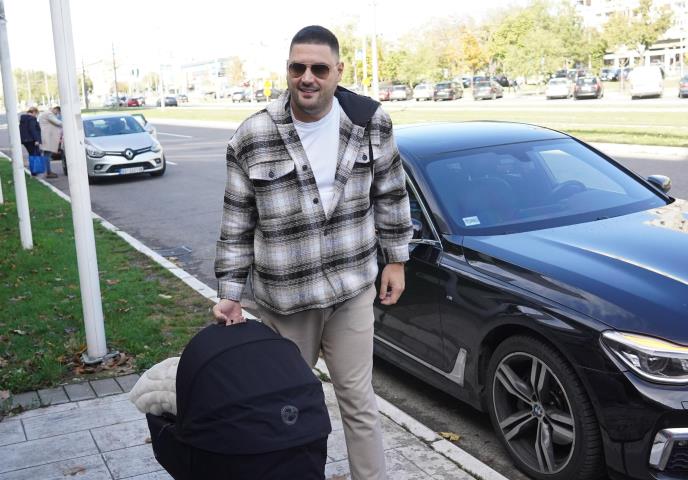 Pevač Ljuba Perućica stigao je u porodilište kako bi suprugu Katarinu i sina Alekseja odveo kući.