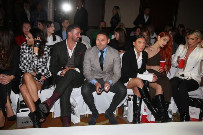 Duško je sve vreme gledao u modele a kada nije gledao je u njih gledao u telefon i sa nekim razmenjivao poruke. Oko njega su sedele uglavnom devojke a tu je bila i pevačica Ivana Boom Nikolić.